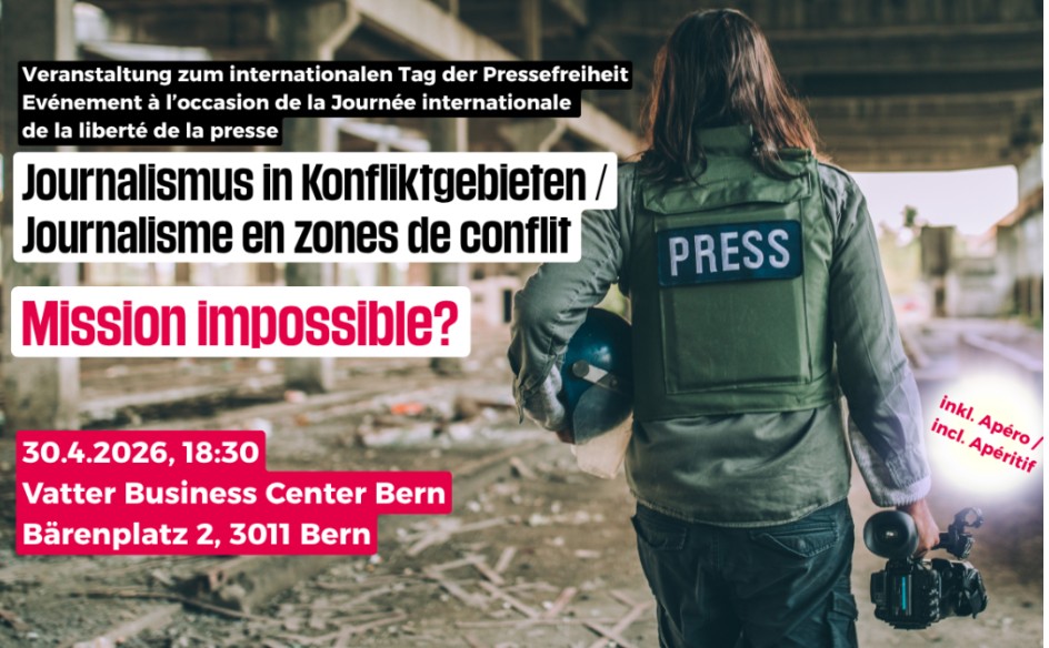 Nous discuterons de cette réalité le 30 avril, jour de la publication du nouveau Classement mondial de la liberté de la presse 2026 de Reporters sans frontières (RSF), en présence de reporters et de spécialistes du journalisme en zone de crise. Nous sommes heureux de vous annoncer d’ores et déjà la présence de Luzia Tschirky (ancienne correspondante de SRF en Europe de l'Est) ainsi que Monika Bolliger (responsable du département Global chez Republik) et Sacha Meuter (Head of Research and Policy de la Fondation Hirondelle – Media for Peace and Human Dignity).